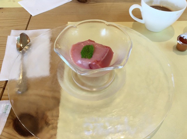 デザートは「熱帯のフルーツ グアバのジュレにソースをかけて」。