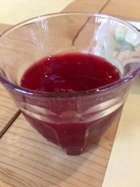 まずは、野菜ジュースを選びます。連れは、アップルジュース。