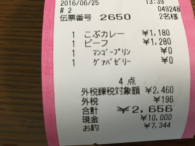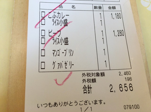 会計は、税込2,656円。クレジットカードが使えないのがちょっと残念。