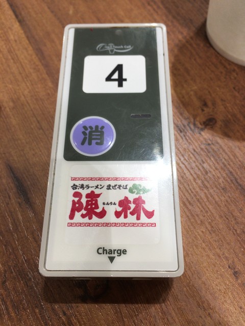 カウンター横の券売機で食券を購入し、カウンターで渡し、半券と呼び出しブザーを受け取ります。
