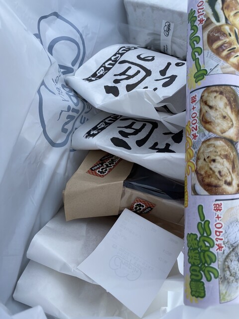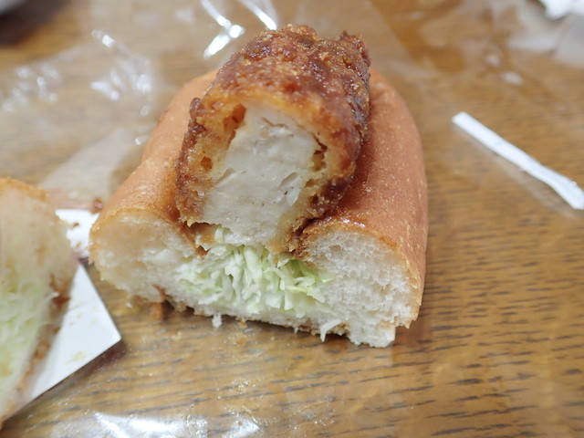 連れと入れ替わり、連れが買ったのは、「かりんとうまんじゅう(黒糖風味 こしあん入り)5P」(421円)、「香味ねぎチキン」(410円)、匠のカレーパン(194円×2個)、コロッケ(64円)、フライドチキン(194円)、1/2チョコ棒(108円)。合計、1,585円。