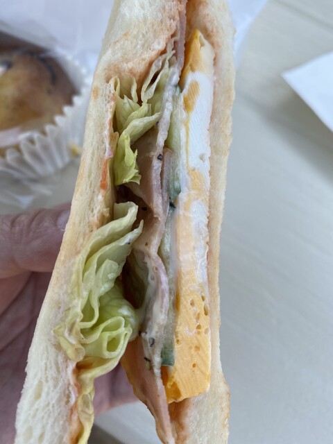 「クラブハウスサンド」(345円)もやや小さめでやはりちょっとコスパ低い。味は文句ありませんが。