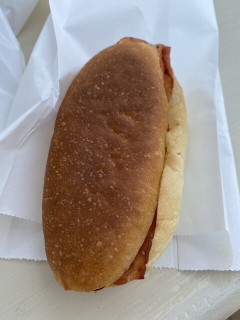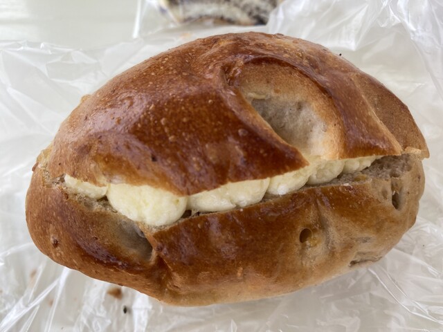 購入したパンを、初めて、店前のテーブルで食べます。