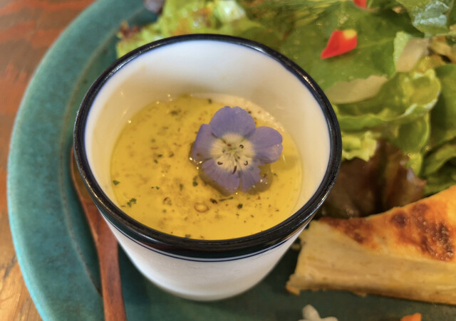 キッシュは生地はパリパリ薄い層が重なっているタイプ。具の部分はきめ細かくて、とにかくトロットロで滑らかに溶けていく。美味しい…
