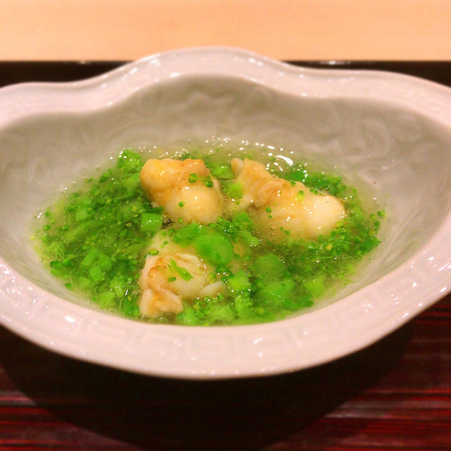 越前蟹・・・角切り大根の絶妙な食感に柚子皮が香り、優しい薄味が蟹身の旨味を際立てます。