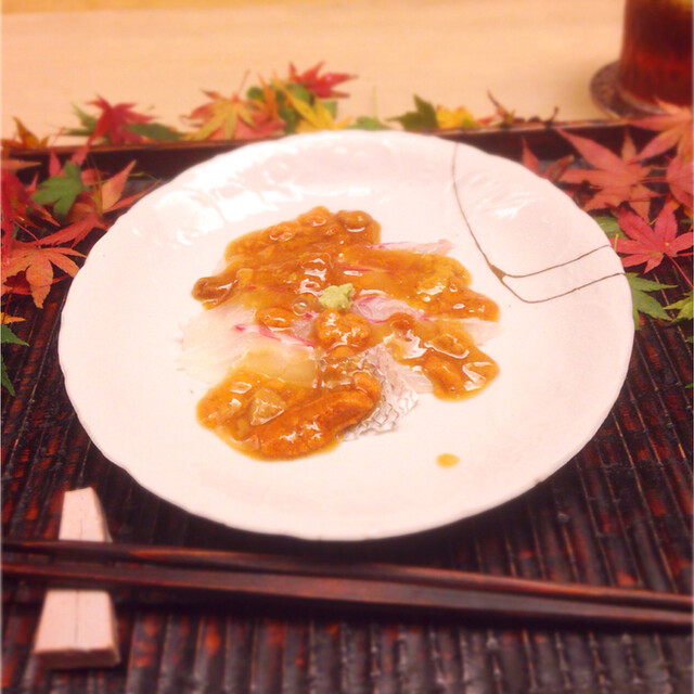 ・明石の鯛&昆布雲丹ソース・・・雲丹の濃厚な甘みに出汁染みわたる餡に絡む新鮮な鯛。あまりの旨さに喉チンコが悶絶*・゜゚・*:.。..。.:*・'(*゚▽゚*)'・*:.。. .。.:*・゜゚・*