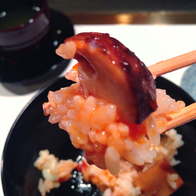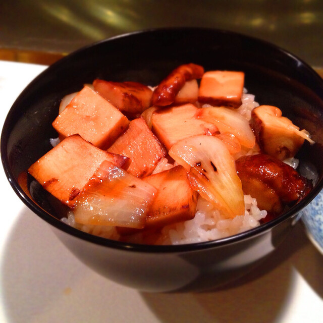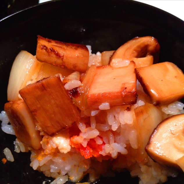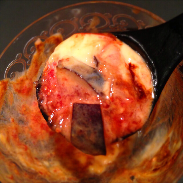 更に松茸ご飯では1つがボリュームある松茸が丼に沢山入り、香りと食感を楽しめご飯の真ん中層に蘭王の温泉玉子が入っててこのマリアージュの頬っぺたが落ちる旨さにまたもや瞳を閉じてウマ♪───O(≧∇≦)O────♪としか言い様のないボキャブラリーの少なさに反省しながら、デザートの苦いソースのクリームブリュレになんで?と疑問を思ったら中から、甘いイチジクが♡でてきたりと・・・なんて楽しんでしょう(^∇^)
