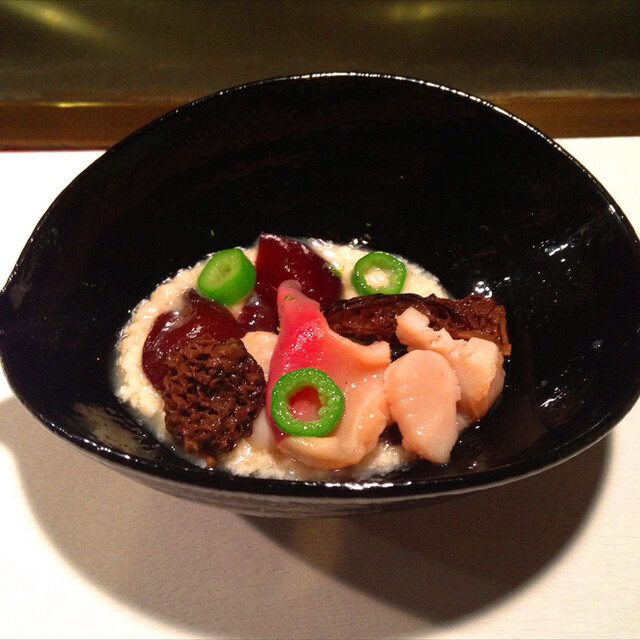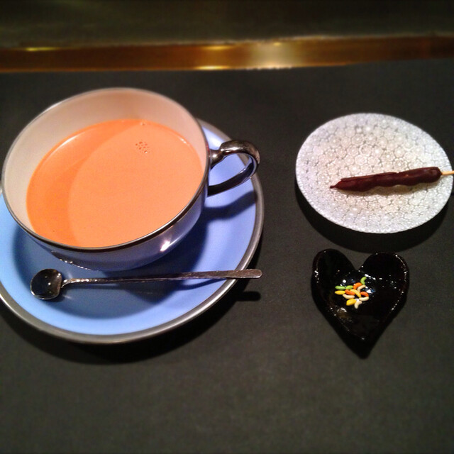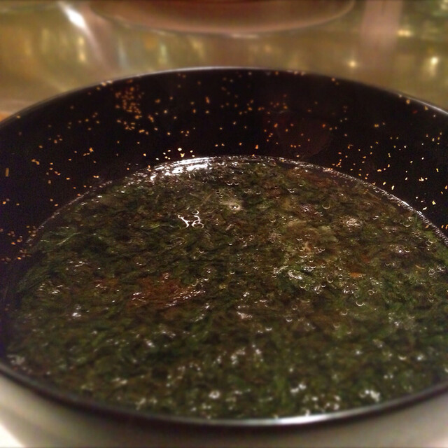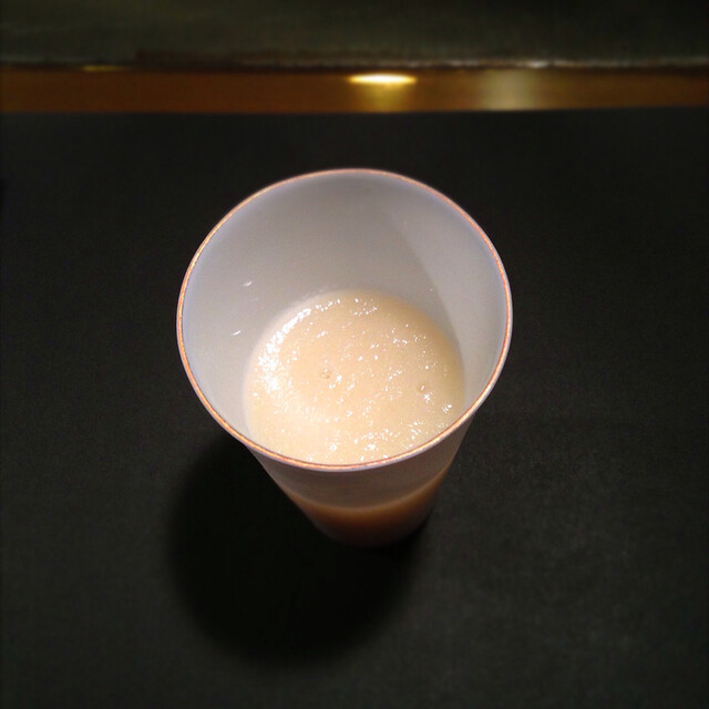 めちゃくちゃ旨いフカヒレの炙りや、プリンプリンで歯茎で切れる極上の柔らかい蒸し鮑にも絶妙に合い、コース途中の悶絶メニューあおさのりの味噌汁ではなく、【あおさのりのスープ】では隠れていて中から香ばしく、トロファな食感とあまりに旨い出汁の優しいスープに思わずカチョカバロを左側の奥歯で優しく噛み締めながら、瞳を閉じスープを味わうと自然に笑いが出ます☆*:.。. o(≧▽≦)o .。.:*☆めちゃくちゃウマ〜〜い!!!