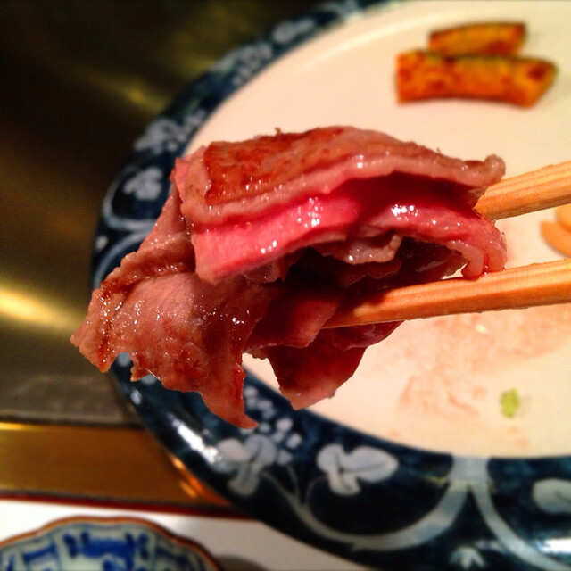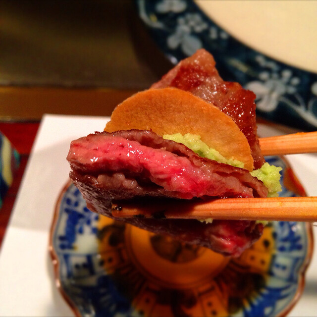 はじめに山葵とフライドガーリックで食べて、のわ〜〜☆*:.。. o(≧▽≦)o .。.:*☆って柔らかく肉の何層にもなる旨味に酔います酔います(=´∀`)人(´∀`=)