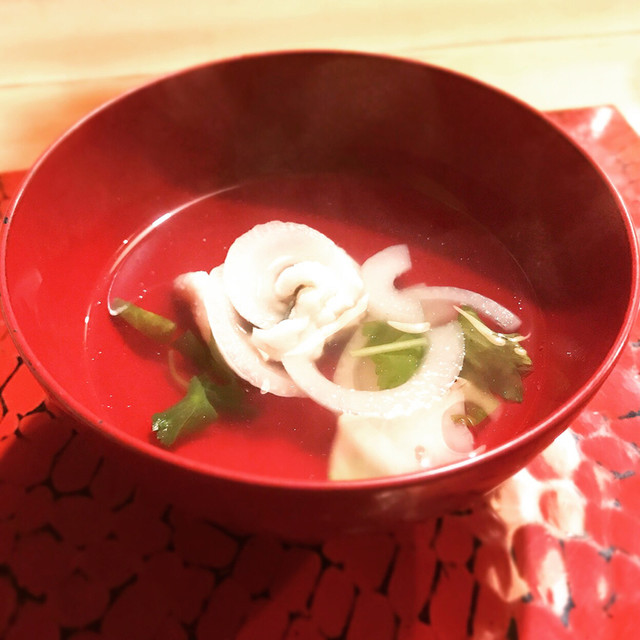 ☆鱧と玉ねぎのお汁・・・出汁が本当に本当に旨い(● ˃̶͈̀ロ˂̶͈́)੭ꠥ⁾⁾二回目はつみれ汁、これも絶品♡