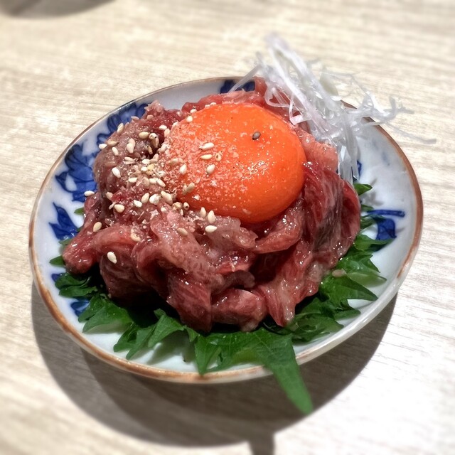 噛みしめるほどに肉の旨味と甘みがじゅわっと口の中に広がり卵黄が絡む事でまろやかさとコクが加わり、めちゃ美味しい‼️