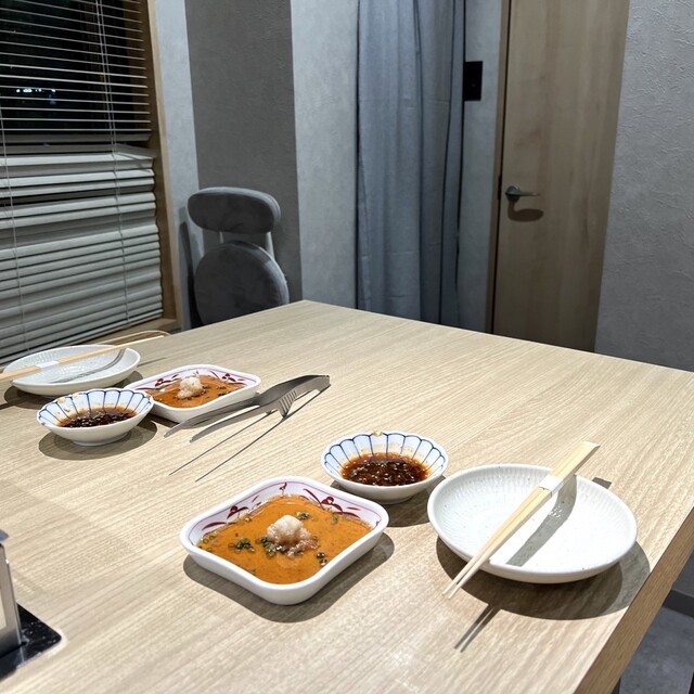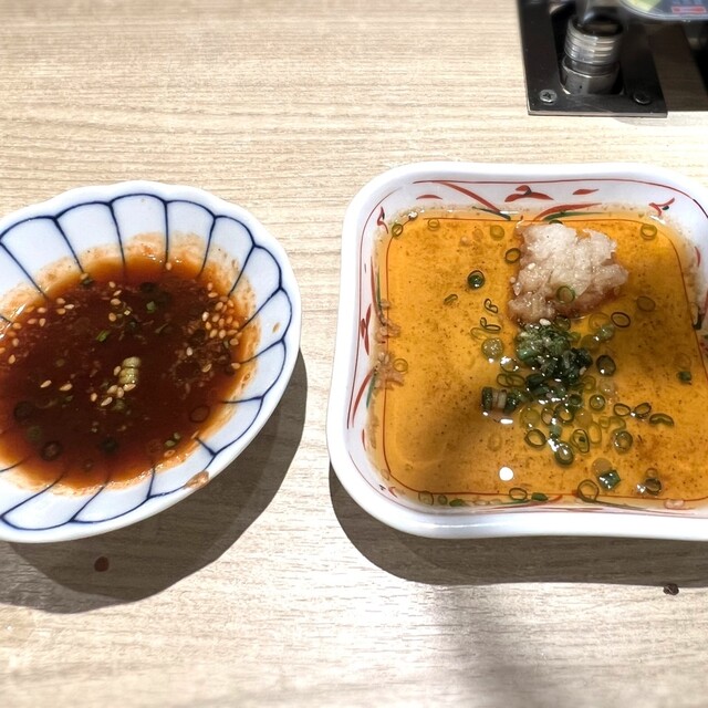 アラカルトで1人前4切れ、ハーフ2切れとオーダーしやすいのが良いですね。肉の種類によって変えるつけダレのバリエーションが素晴らしいし、コスパも最高˚✧₊⁎❝᷀ົཽ≀ˍ̮ ❝᷀ົཽ⁎⁺˳✧༚こちらは予約困難になるのは間違いないでおまっ