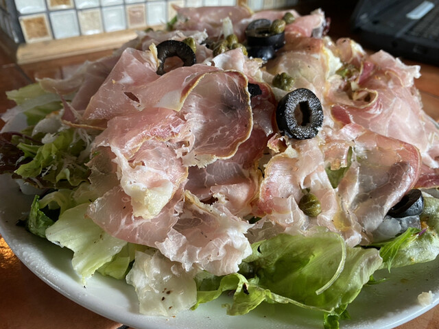 オーノさんとこで食うとね、生ハム野菜サラダは別盛りでだしてくれんのさ。しかもしかも野菜サラダが大量なんだな。野菜好きな人にはたまらんって。自分もねおっさんだけど野菜が好きなので、この生ハム野菜サラダが大好きなんだわね。