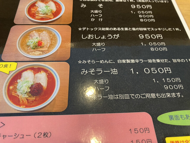 食べログではまだ誰もレビューしてないべさ。ほんで、ラーメンの写真みたら濃い〜色の味噌ラーメンがあっからさ。なんかうまそうだもんね。したらばチャレンジだ!