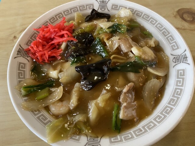 満月さんはソース焼きそばの「焼きそば」も美味いけど「あんかけ焼きそば」もかなりいけるぞ〜。