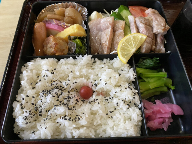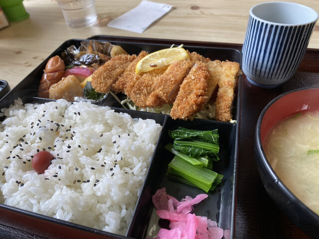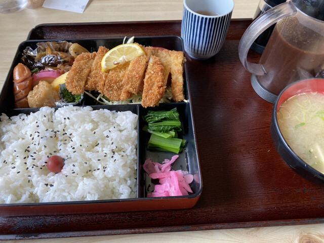 「カツ弁当」と「カツランチ」「カツ定食」はおかずの内容が違うよ。イチバンおかずもご飯も多いのは「カツ定食」で「カツランチ」「カツ弁当」の順にちょっとずつ少なめになってんだわ。してほれ、満月さんは出前もしてるべ?「カツ定食」より「カツ弁当」の方が出前向きだべさ(^^)