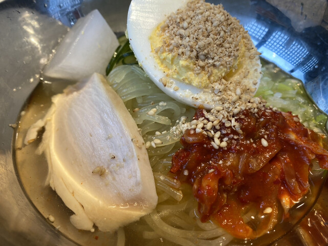 ここんち、タレがちと甘いんだね。ん〜?と思ってテーブルにあった塩をかけてみても、この塩もなんか別の味がついてるからね。はてはて、したらコチュジャンでも大量投下してやるべか。