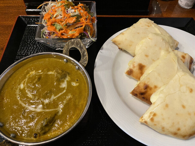 セットのナンをチーズナンに変えてもらったわ。チーズナンよりチーズクルチャなら嬉しいけど、なんも形状だけの違いなんだね、ここんちのチーズナンはチーズクルチャを4等分した感じだったわ。