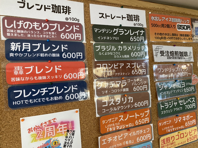 ちゅーことで、ご店主さんとお話をさせてもらいながら選んだのは「しげのもりブレンド」と「浅煎りコロンビア」だべさ(^^)
