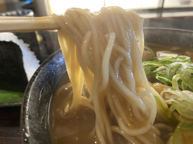 基本に忠実に、出汁の効いたカレーそばだよ。なんもどんぶりギリギリまでカレー汁をいれたりはしないよ。