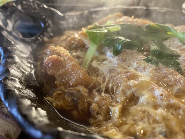 そばの返しを使ったカツとじなんだよ。このお出汁たっぷり吸ったカツがなまらご飯とあうのだよ。