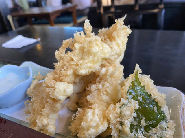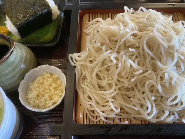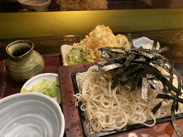 ちゅうことでオーダーしたったのは「イカ天ざる」と「鮭おにぎり」だべさ。イカ天会の会長だもの仕方ねえべ(^^)