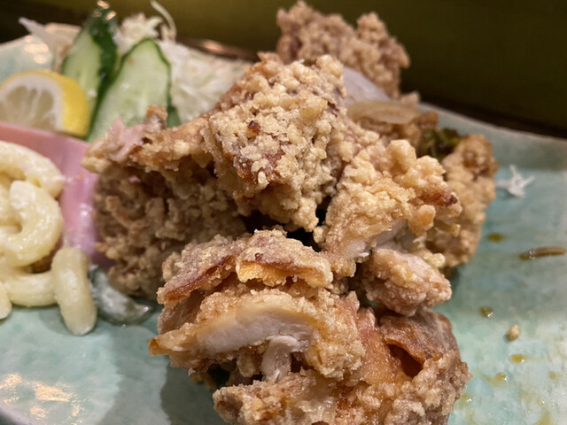そば辰さんのから揚げは、一枚モノの鶏胸肉をカットしないで揚げるんだわ。カラッと揚がった鶏胸肉を食べやすい大きさにカットしているんだな。ねねね、そば辰さんのから揚げは只者でねえべ?