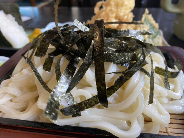 つーことで「イカ天ざるうどん」を大盛りでもらいますべか。へへへ、「イカ天ざる」だとざるそばだべ?ここはあえてざるうどんよ(^^)