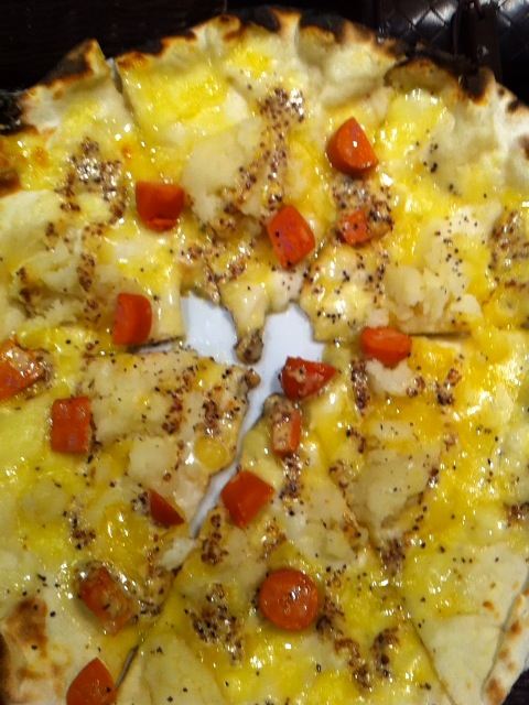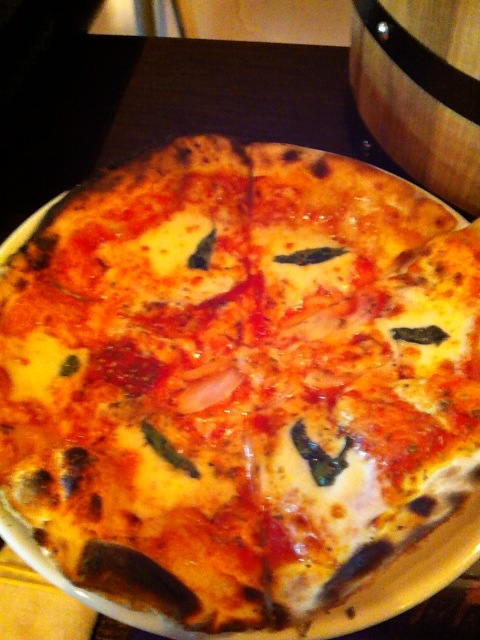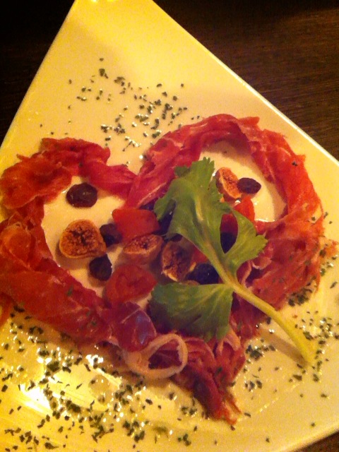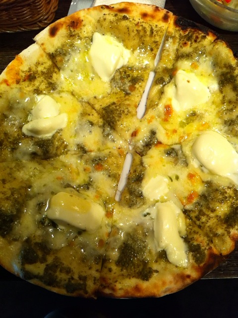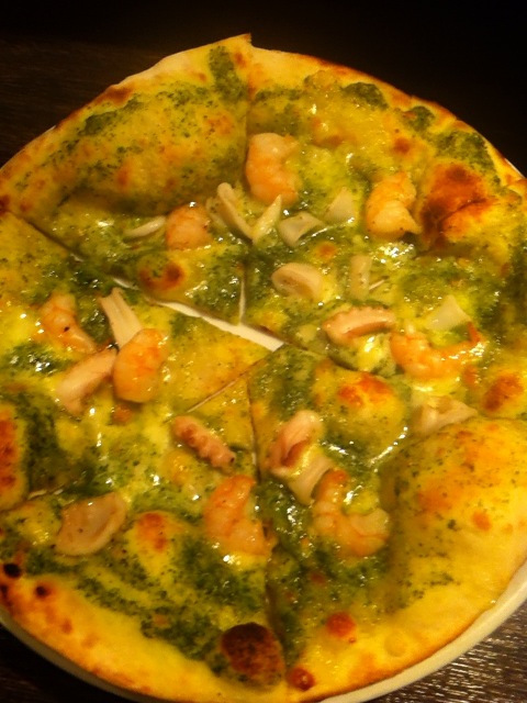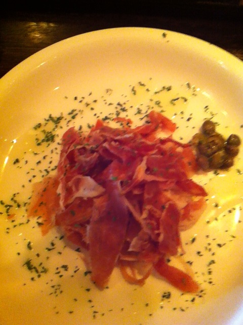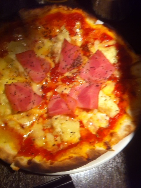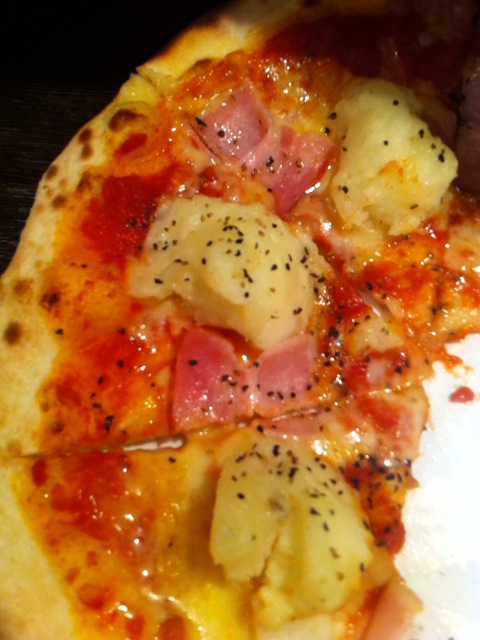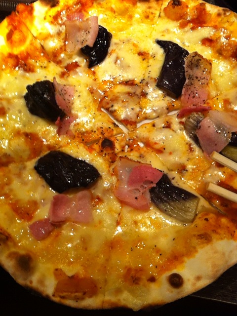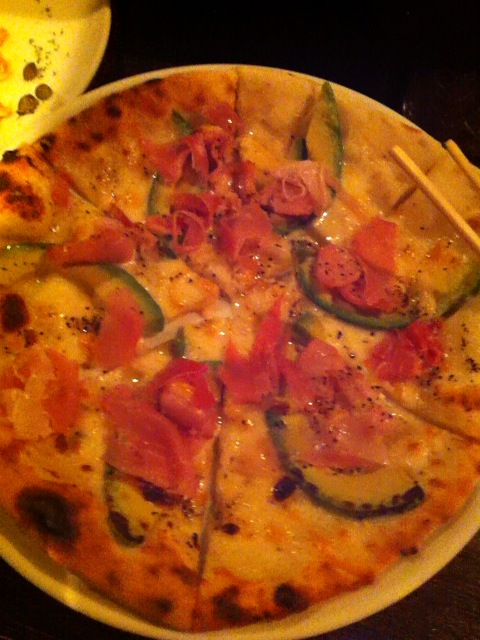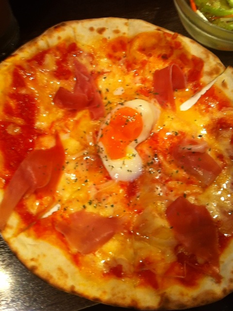 この日食べたのはいつもの生ハムと、ミックスナッツ、カルボナーラ風ピッツァ。