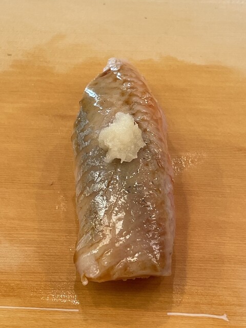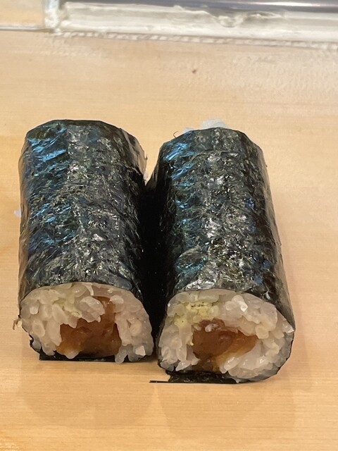 コハダ、ヒラメ、タイ、赤身、煮ハマグリ、アナゴ、アジ、鉄火細巻き1本でいつも帰ります。11月の下旬ごろから大間のマグロになります。たまに、部位で鉛筆、すなずりが入ります。