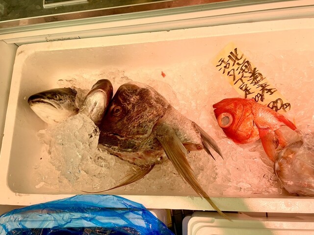 まるごとのお魚は、その日のおいしそうなのが並んでて、