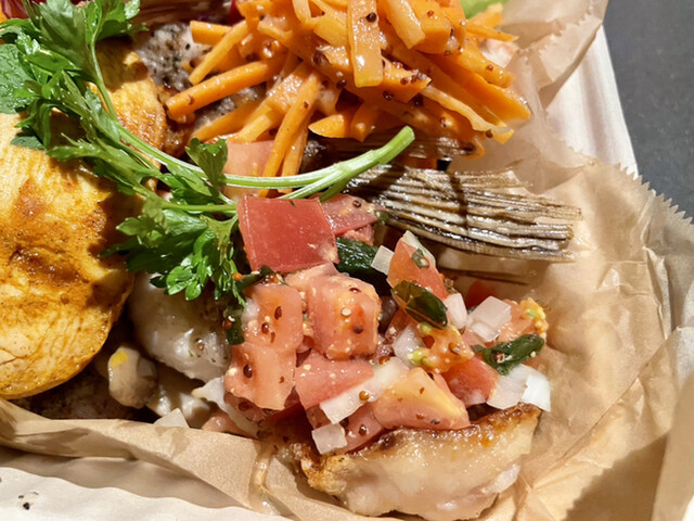 串焼きにはフライドポテトが付くとのお話だったのですが、ロゼッタさんのおいしいお野菜をもりもり食べたくてフライドポテトを生野菜に変更していただきました。