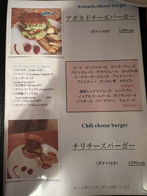 前から気になっていたが人気店で混んでいたため、訪問チャンスがなかったところ、無性に食べたくなって土曜日で混んでいるのを覚悟で思い切って訪問。11時過ぎだったが、店内は3組ほどお客がいただけでまだ空いていた。アボカドベーコンチーズバーガーが美味しそうだったので注文して待っていると、次から次へとお客が入って来てあっという間に満席になってしまった。どうやら入店のタイミングが良かったよう。周りのお客の様子を見ていると皆さん地元の方のようだ。ハンバーガーはアボカドとベーコンがそれぞれの味を引き立てている。先日食べたキャプカンのベーコンはかなり塩辛い感じがしたがこちらはちょうどいい塩加減だ。また訪問したい。