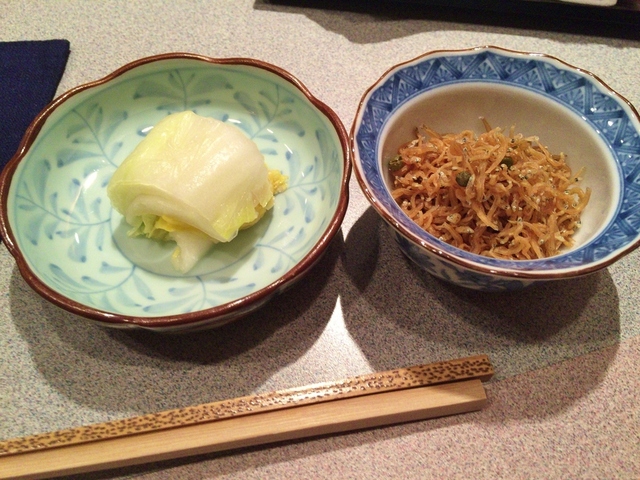 【つきだし】白菜の漬物とちりめん山椒。