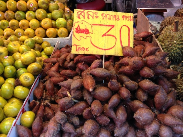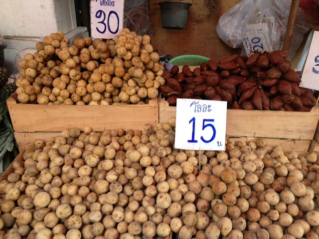 マンゴー、ランブータン、パパイア、ロンガン、ドリアンなどおなじみのものに加え、サラックという日本ではあまりお目にかかれないフルーツもあります。