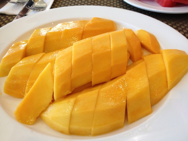 毎朝、ホテルの朝食時に、フルーツが山盛り。 南国の朝を満喫です。