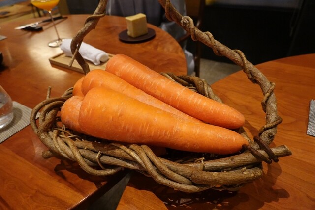 さらに、火入れして燻製した人参のチップスを