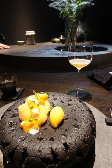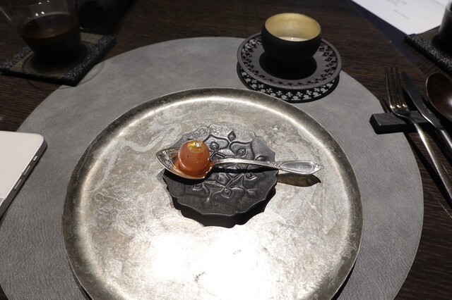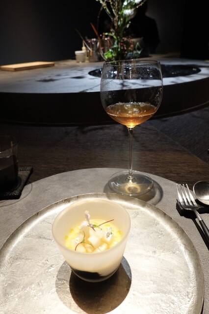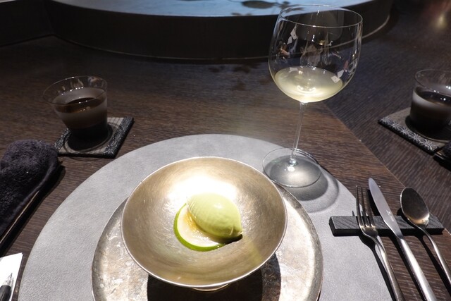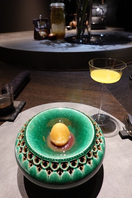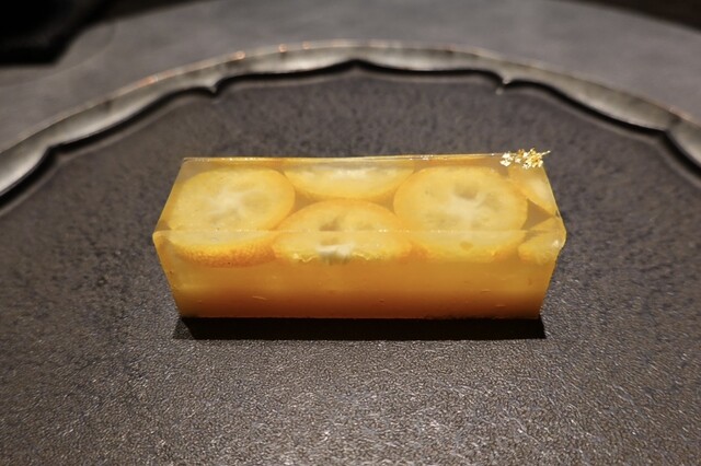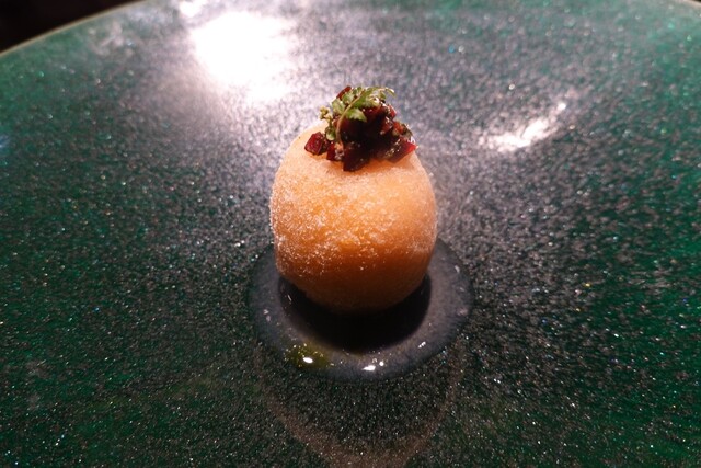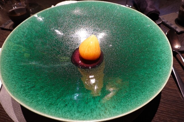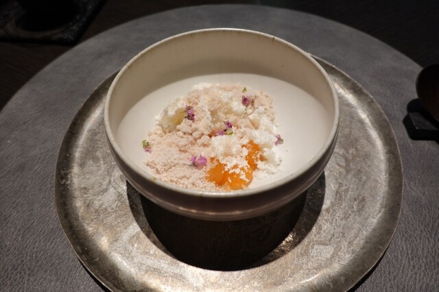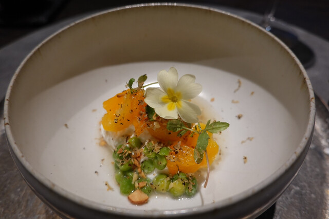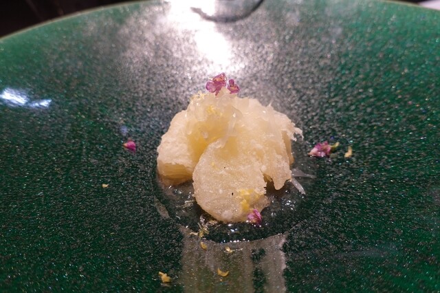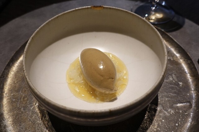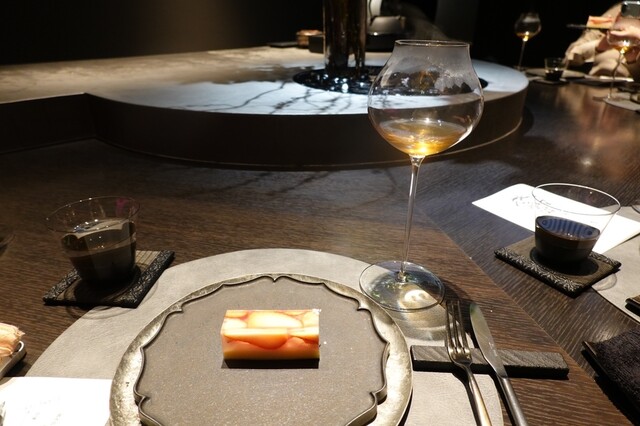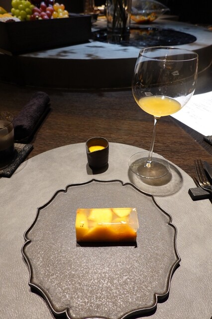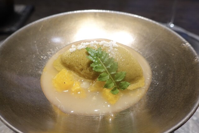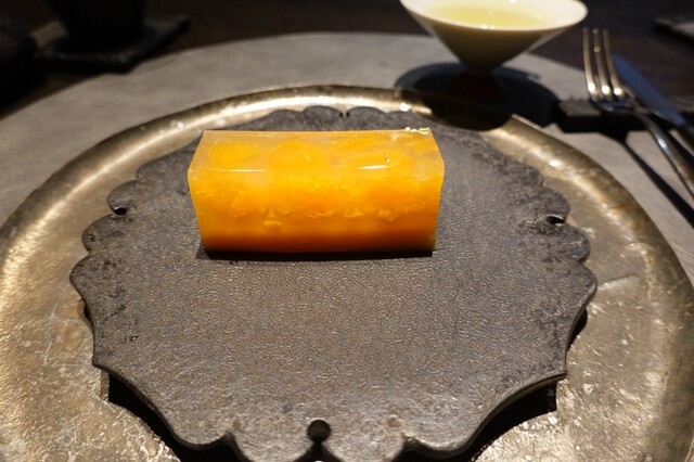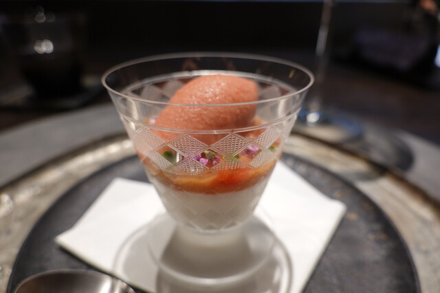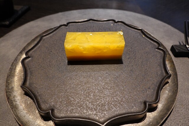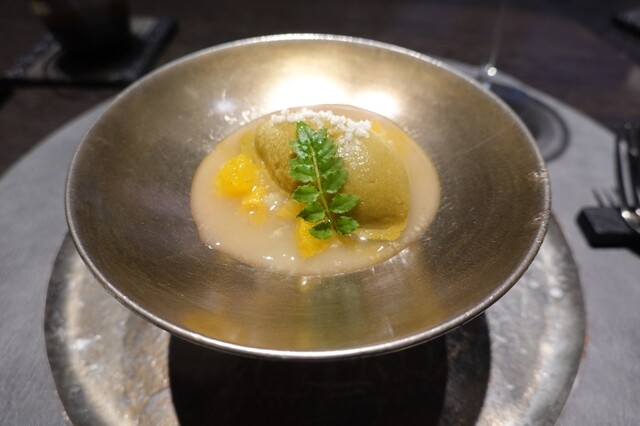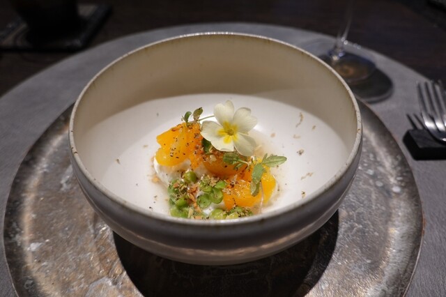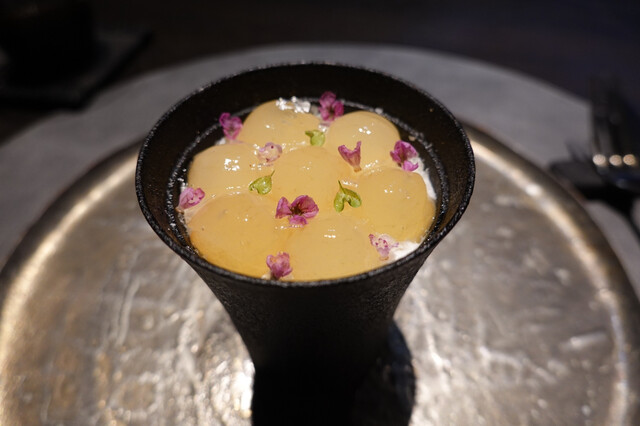 黄金桃とマンゴービネガーのソルベ