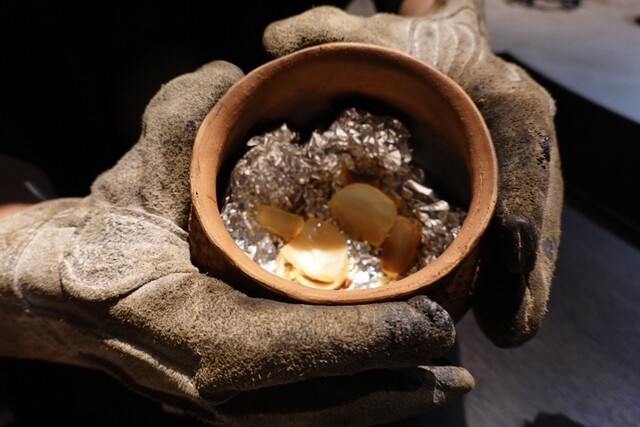 ヒバを使って、土器で火入れした