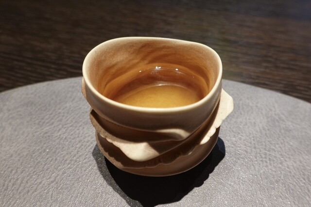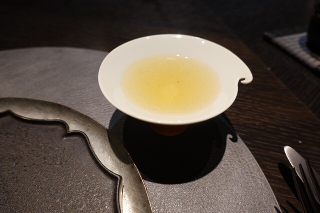 烏龍茶に鰹出汁で。
