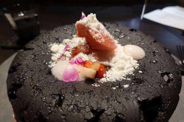 桑の実、ぶどうと八角のソースを。