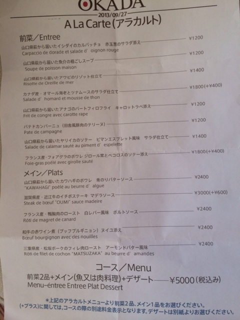 9月27日(金)に三名で行きました。コースではなくアラカルトで注文しました。