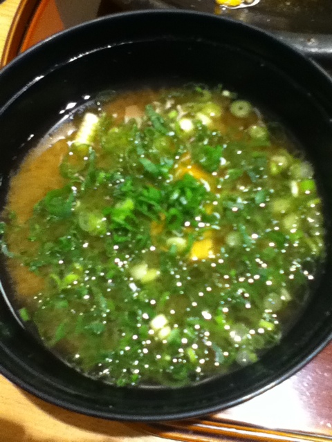 おかわりしたお味噌汁には風邪をひかないようにとネギをたくさん入れてくれました。嬉しい心遣い。
