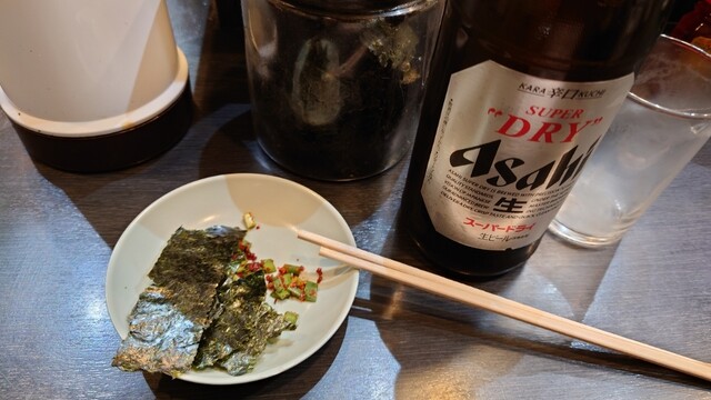 瓶ビールも大瓶の様ですが、あまりにも身体が冷えすぎて熱燗をまず注文。これも340円!すげぇぜ。