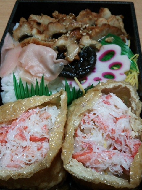 かにいなりとあなご飯