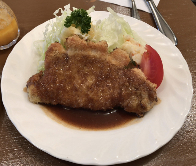 ソースは自家製感たっぷりのしつこ過ぎず、でも奥行きのある印象が、薄い衣のカツレツを洋食へ誘います。