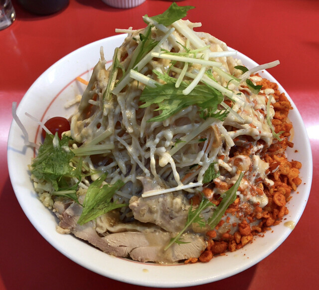 冷やし中華(少な目)麺130グラム 850円 ショウガ辛揚げガリマヨマシカラメマシマシ