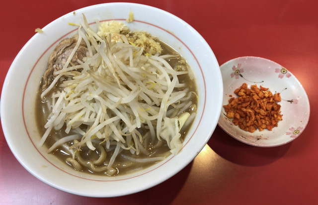 ニンニクザンマイ麺半分 ヤサイ少な目ニンニク辛揚げ別皿のガリマヨマシマシで 780円