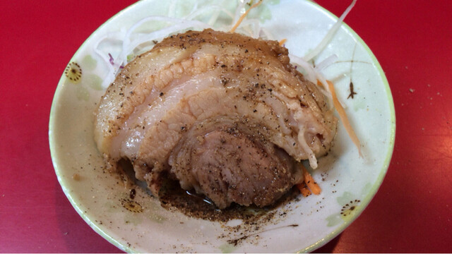 追加豚1枚 90円 冷やし中華仕様へカネシに卓上黒胡椒挽き挽き