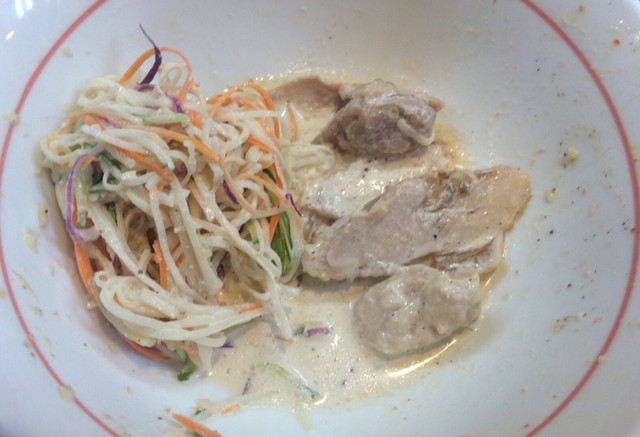 冷やし中華 麺を食べ終えて、ヤサイと鶏チャーシュー